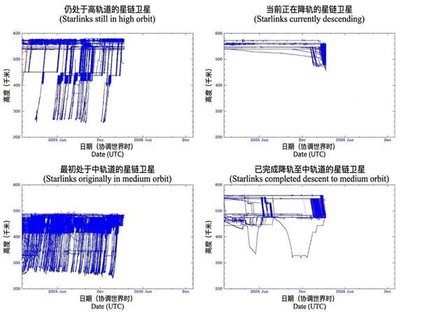原本这些卫星大多运行在550公里高度。现在其中652颗卫星已经降至480公里轨道,972颗卫星正在下降途中,合计大约1600颗卫星正在迁移到更低轨道。